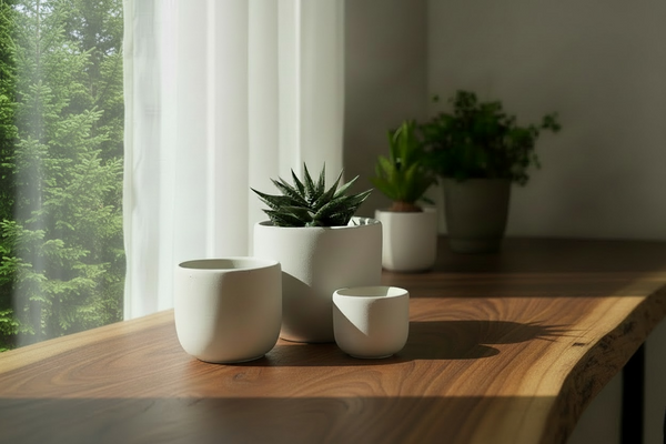 Our concrete planters are made with a blend of premium concrete materials, resulting in a durable and long-lasting product. The smooth and sleek finish adds a touch of modern elegance to any decor style, making it a versatile choice for various design themes.